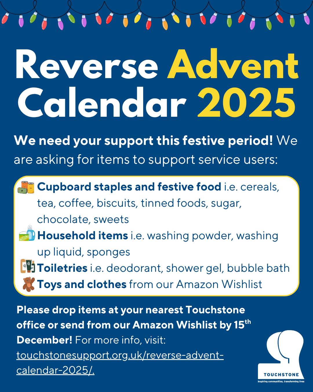 We need your support this festive season! This year, Touchstone is running a reverse advent campaign to support people who use our services to stay warm and well this Winter.